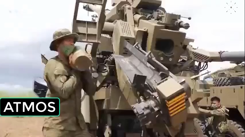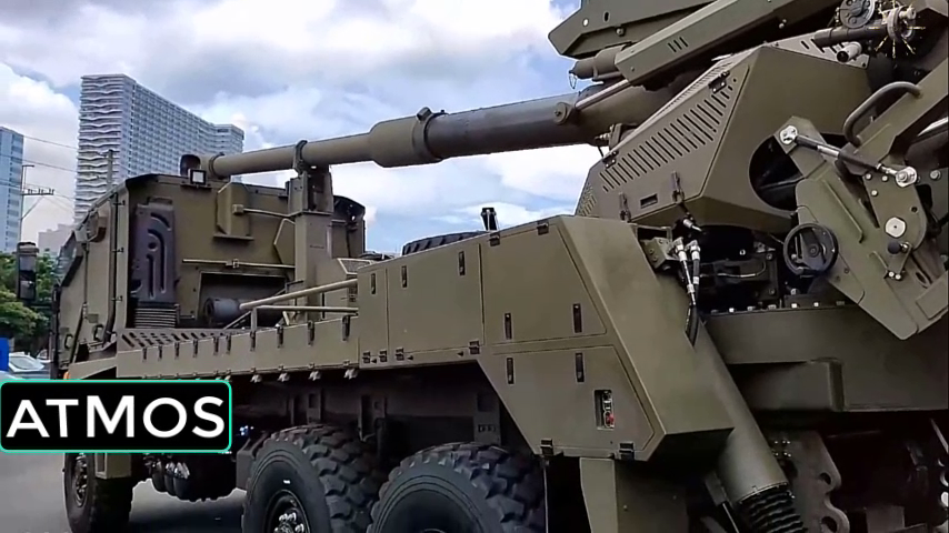 ATMOS can be mounted on 6×6 or 8×8 trucks, such as Tatra or Oshkosh platforms. This modularity allows customer nations to select vehicles that fit their logistics, terrain, and maintenance ecosystems. The wheeled design makes it more strategic-road mobile than tracked self-propelled guns.