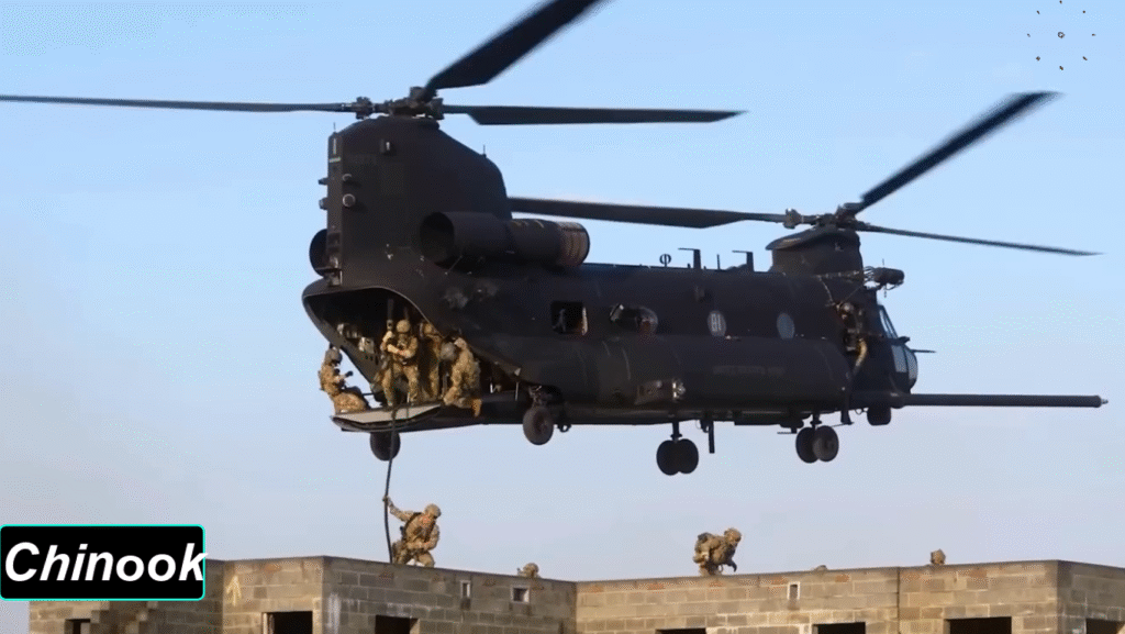 The Chinook’s primary role is heavy-lift transport—moving troops, artillery, vehicles, and supplies. It’s indispensable in combat zones, often performing under fire to deliver critical reinforcements.