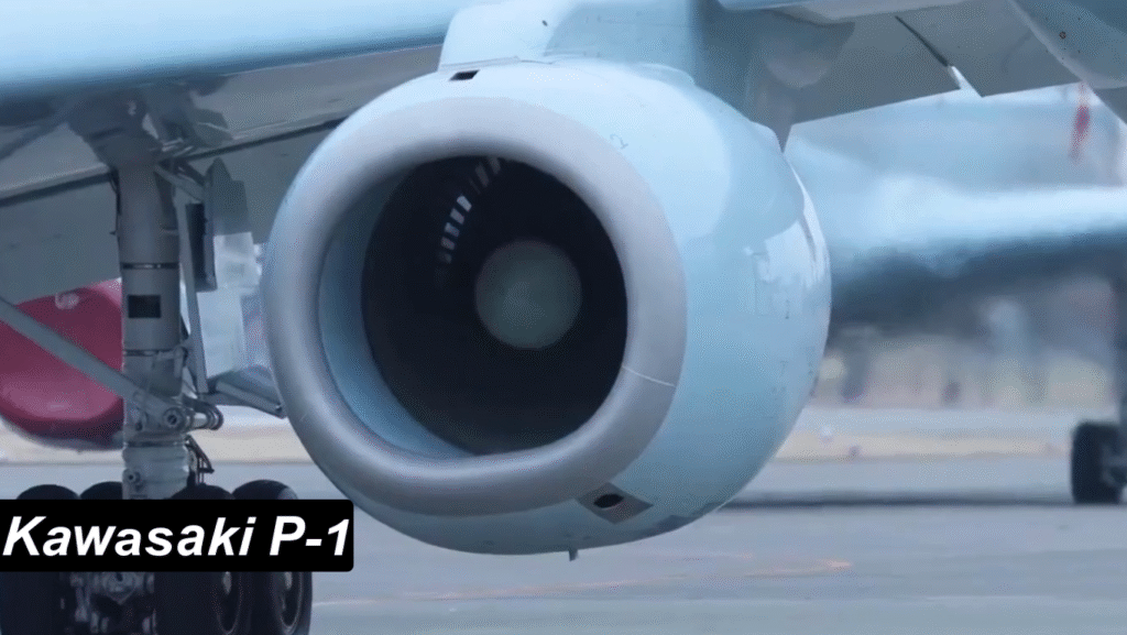 The P-1 is powered by four IHI F7-10 high-bypass turbofan engines, each providing substantial thrust while maintaining fuel efficiency. These engines allow the aircraft to achieve a maximum speed of approximately 996 km/h and a cruise speed near 833 km/h.