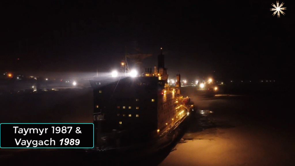Built in Finland but powered by Soviet nuclear technology, the two ships embodied a rare fusion of international craftsmanship and late–Cold War ambition. Their reactors granted them extraordinary endurance, freeing them from the constant logistical burden of refueling. This autonomy mattered less for spectacle than for reliability. In the Arctic, schedules are fragile things, and a single missed convoy can isolate entire regions for months. Taymyr and Vaygach were built to ensure that did not happen.